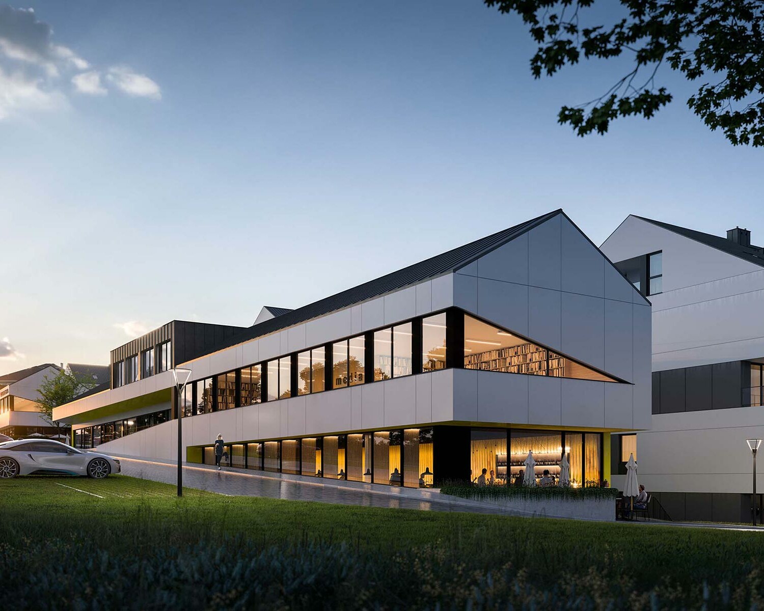 A realistic, computer-generated image or rendering that showcases an architectural project from multiple perspectives, including the building’s exterior, interior spaces, and aerial viewpoints. This visualization helps clients clearly see the design, materials, and spatial relationships, providing a comprehensive understanding of the project before it is built.