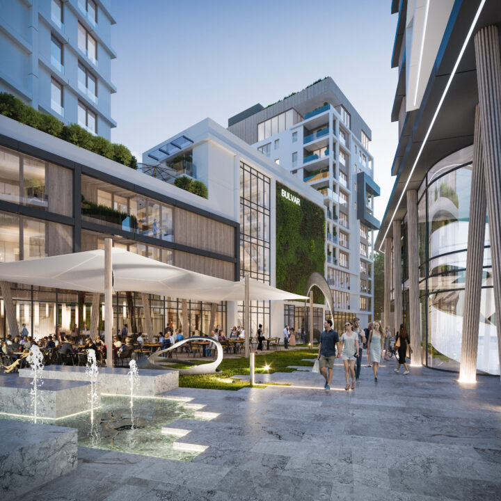 A realistic, computer-generated image or rendering that showcases an architectural project from multiple perspectives, including the building’s exterior, interior spaces, and aerial viewpoints. This visualization helps clients clearly see the design, materials, and spatial relationships, providing a comprehensive understanding of the project before it is built.